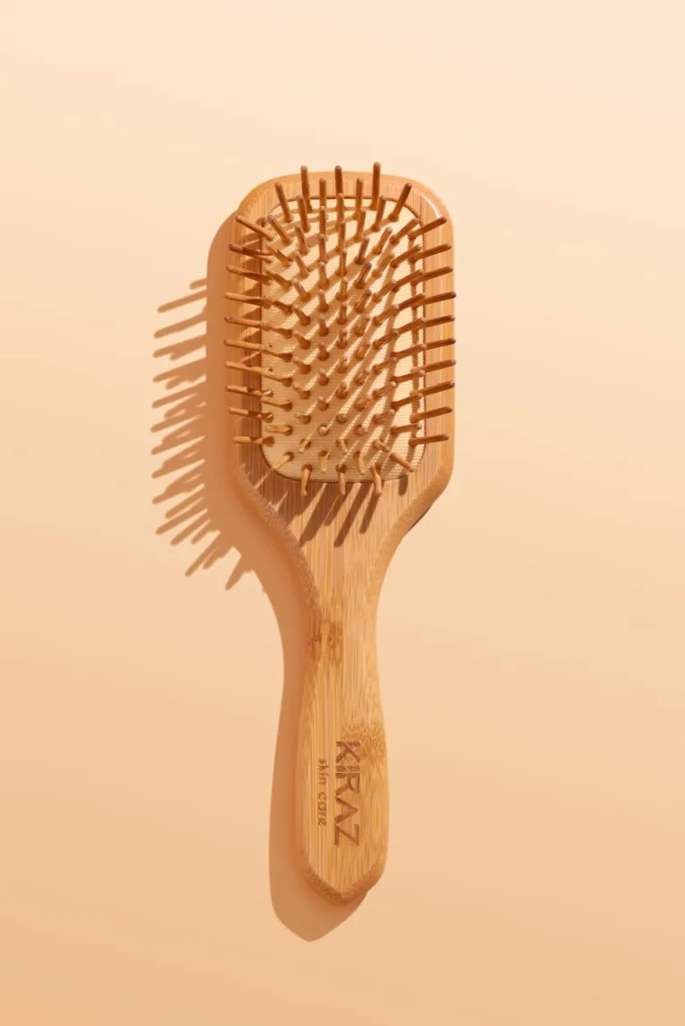المشط الخشبي يُعتبر من الأدوات الطبيعية المفيدة جداً للعناية بالشعر، وله فوائد متعددة مقارنة بالأمشاط البلاستيكية أو المعدنية . 1- يحافظ على صحة فروة الرأس ( الخشب لا يولد شحنات كهربائية مثل البلاستيك ممل يقل من الهيشان ويمنح الشعر مظهراً ناعما وطبيعياً) 2- ينشط الدورة الدموية (تمرير المشط الخشبي برفق على فروة الرأس يساعد في تحفيز تدفق الدم البصيلات ،مما يعزز نمو الشعر ) 3- يوزع الزيوت الطبيعية بالتساوي ( أسنان المشط الخشبي تساعد في توزيع الزيوت الطبيعية من فروة الرأس إلى أطراف الشعر ، مما يزيد من ترطيبه ولمعانة ) 4- يقلل من تساقط الشعر والتقصف ( المشط الخشبي لا يسبب احتكاكاُ مفرطاً ، فهو يقلل من تكسر الشعر عند التسريح ) 5- اّمن وصديق للبيئة ( كونه مصنوعاً من مواد طبيعية ، فهو خال من المواد الكيميائية الضارة وقابل للتحلل